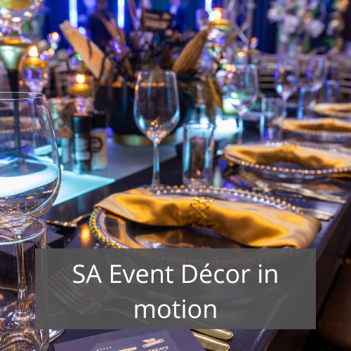 SA Event Decor transforms venues into immersive, visually striking experiences for corporate events, gala dinners, and brand activations — combining creative design, custom builds, and seamless execution across South Africa.